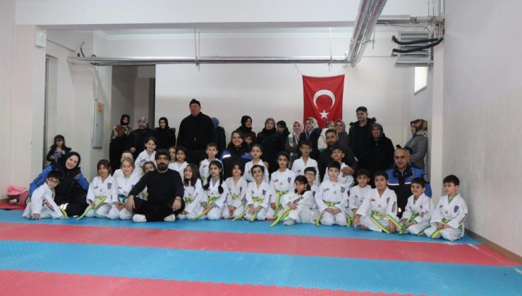 Erzurum Emniyet Müdürlüğü Toplum Destekli Polislik Şube Müdürlüğü tarafından 2024 yılı içerisinde yürütülüp tamamlanan “Hayal Edelim Geleceğimizi Değiştirelim” projesi kapsamında, Kazım Yurdalan TOKİ İlkokulunda verilen tekvando kursunda başarıları sonucu bir üst kuşağa yükselen öğrencilerin, “Kuşak Bağlama Törenine” katılan polisler, minik sporcuları yalnız bırakmadı, onların kuşaklarını bağladı.