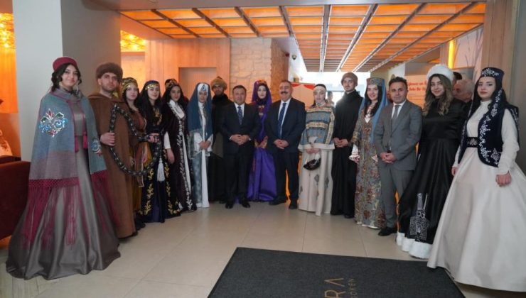 Türk devletlerinin geleneksel kıyafetlerinin ve modern tasarımlarının sergilendiği kültürel buluşma organizasyonundaki kıyafetlerde tel kırma, nakış, iğne oyası gibi islemeler bulunuyor.
