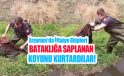 Bataklığa saplanan koyunu kurtardılar!