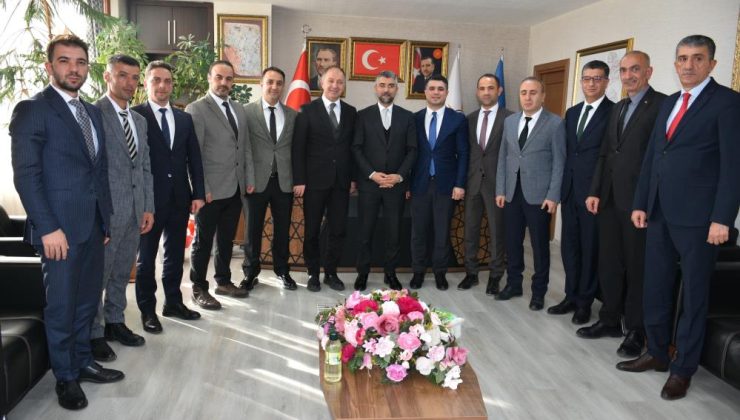 Yeni atanan ilçe müdürleriyle birlikte AK Parti İl Başkanı Av. İbrahim Küçükoğlu’nu ziyaret eden Erzurum Gençlik ve Spor İl Müdürü Levent Çakmur, süreçte gösterdiği ilgi ve destekleri için Başkan Küçükoğlu’na teşekkür ederek milli forma hediye etti.
