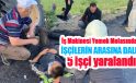 İş makinesi yemek molasındaki işçilerin arasına daldı!