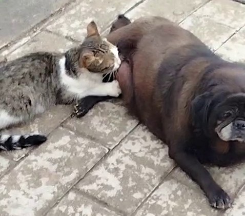 Kedi ve köpeklerin kavgası herkesçe bilinir ama bu defa böyle olmadı. Erzurum’un Oltu ilçesinde sokak ortasındaki bir kedi ile köpeği görenler önce şaşırdı sonra da hayretle izledi. Vatandaşlar tarafından cep telefonu ile kayıt altına alınan ve sosyal medyada paylaşılan görüntülerde; bir caddede köpeğin kediyi emzirmesi ve ortaya çıkan manzara herkesi hayrete düşürdü.