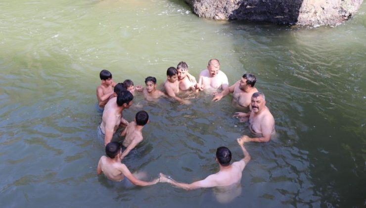 Erzurum’un Şenkaya ilçesinde sıcaktan bunalan vatandaşlar, derelerde hem serinliyor hem de eğleniyor.