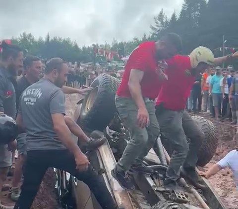 Artvin’de düzenlenen Off-Road yarışlarında Erzurum Macera Offroad takımının yaşadığı kaza yürekleri ağza getirdi.