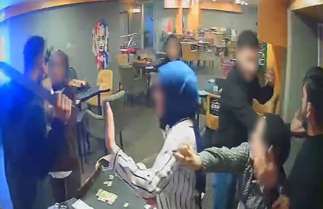 Kameralara yansıyan görüntülerde; oyun salonuna giren adamın okey oynayan ve içlerinde kadınların da olduğu gençlere doğru yürüdüğü görüldü. Önce tehditler savuran ve saldıran adamın daha sonra belindeki sallama bıçağını çıkararak masadakilere doğru savurması bir anda hareketliliğe neden oldu. Okey masasındaki kızların saldırgana engel olmak için adeta gövdelerini siper etmesi ise gözlerden kaçmadı. Bir süre devam eden arbedenin ardından bıçakla gelen adamın arkadaşıyla salonu terk ettiği ve gençlerin korku içinde olduğu görüldü.