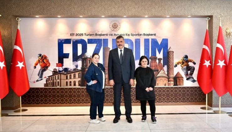 Çağla Okyay ve Elif Ademoğlu isimli down sendromlu özel çocuklar, Erzurum Valiliği’nde göreve başladılar.