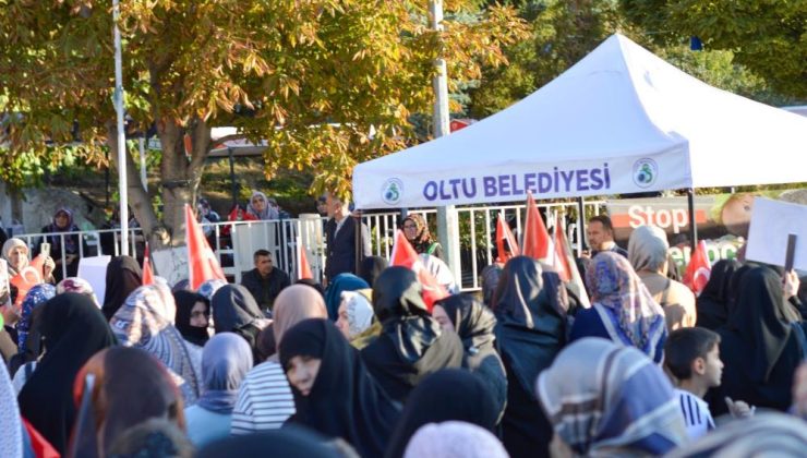 Etkinlikte konuşan Oltu Belediye Başkanı Adem Çelebi ise, “Şunu çok iyi biliyoruz ki bu katil sürüsü bundan sonra da durmayacak. Türkiye ve diğer ülkelere de bu zalimliği, gaddarlığı gösterecektir. Ancak burada toplanan Oltulu kardeşlerimin ve burada bulunan küçücük yavrularımızın masum duaları sonucu bu zulüm, bu kan elbet duracaktır” dedi.