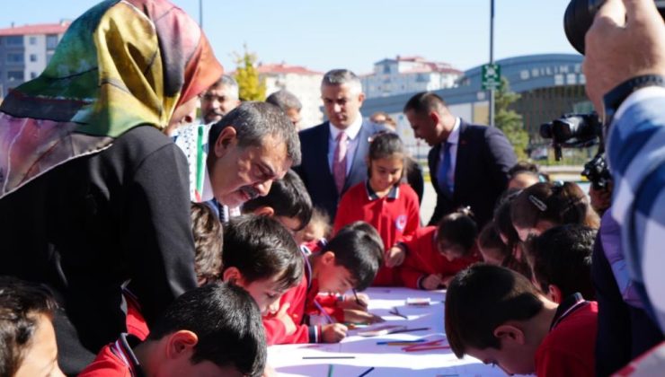 İlçe milli eğitim müdürleri toplantısına katılmak üzere memleketi Erzurum’a gelen Milli Eğitim Bakanı Yusuf Tekin, Ömer Duygun İlkokulu’nda düzenlenen programda öğrenci ve öğretmenlerle bir araya geldi.