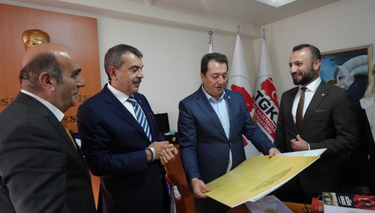 Ziyaret sonunda DAGC Başkanı Türkez ve DGF Başkanı Tarakçıoğlu, Bakan Tekin’e ziyareti anısına bir plaket sundu.
