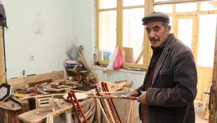 Erzurum’un Oltu ilçesi Şehitler Mahallesi’nde yaşayan evli ve 6 çocuk babası 79 yaşındaki Hüsamettin Aras, atık ağaç parçalarını değerlendirerek yaptığı objelerle geçimini sağlamaya çalışıyor.