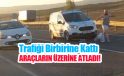 Trafiği birbirine kattı, araçların üzerine atladı, cam kırdı..