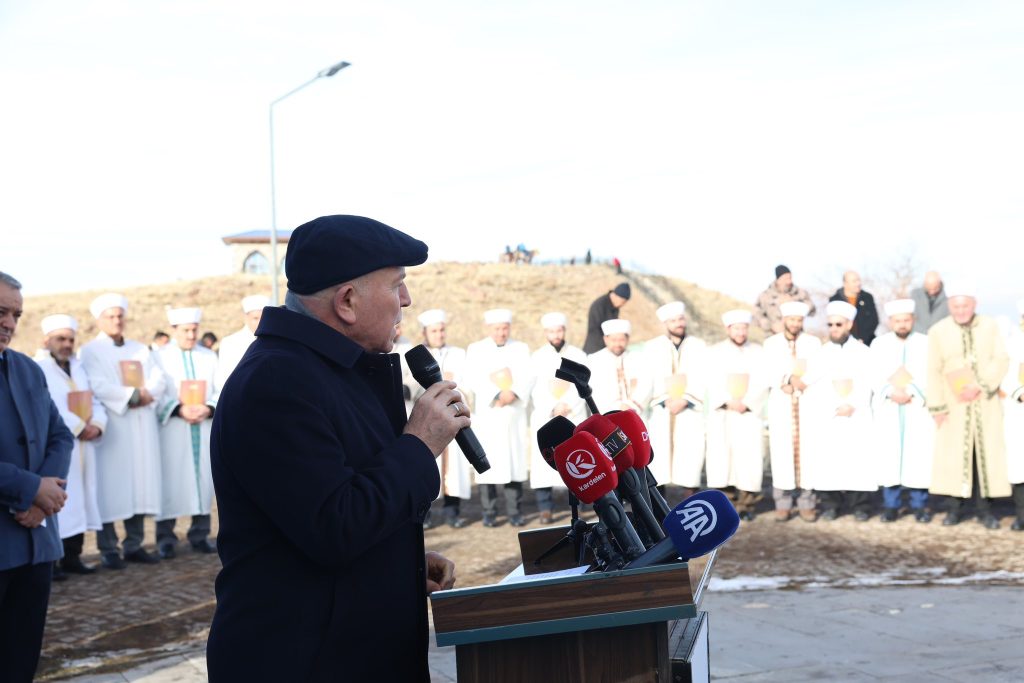 Erzurum’un yalnızca kalelerle korunmuş bir şehir olmadığını vurgulayan Erzurum Büyükşehir Belediye Başkanı Mehmet Sekmen, “Erzurum; yalnızca surlarla, burçlarla, tabyalarla ayakta kalmış bir şehir değildir. Bu şehir; Kur’an’la korunmuş, dua ile tahkim edilmiş, secdeyle sağlamlaştırılmış bir şehirdir. İslam’ın sancaktarlığını yapmış bu kadim belde, Yüce Allah’ın insanlığa rehber olarak gönderdiği Kur’an-ı Kerim’i başının üzerinde bir taç gibi taşıyarak yüzyıllardır bu mukaddes geleneği yaşatmaktadır. Her beldenin bir geleneği vardır. Ama Erzurum’un geleneği, sadece bir âdet değil; bir emanet, bir iman nöbeti, bir manevi muhafızlık görevidir. Bin bir Hatim, Erzurum’un semaya açılmış elleridir. Bin bir Hatim, aziz şehrimizin geceleri uyumayan vicdanıdır. Bin bir Hatim, taşın toprağın değil; kalbin ve ruhun kale olduğu bir direniştir. Rivayet olunur ki; Pir Ali Baba Hazretleri, bu şehrin depremden, afetten, beladan ve musibetten muhafazası için Kur’an’la kuşatılmasını buyurmuştur. Ve o gün bugün; yaklaşık beş asırdır bu topraklarda Kur’an susmamış, dua eksilmemiş, hatim zinciri kopmamıştır” dedi.